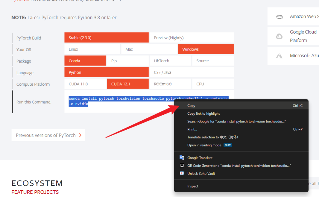 然后在当前的环境下,安装Pytorch,因为我使用的使NVIDIA显卡,因此我要安装pytorch的CUDA版本