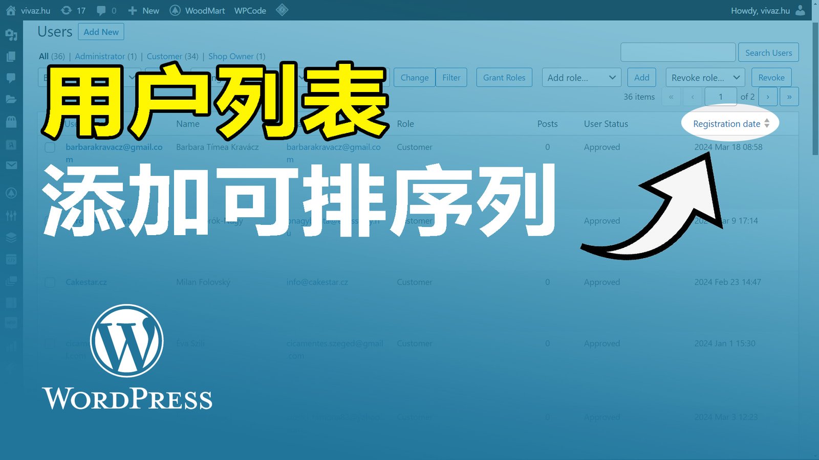 当我们使用wordpress后台管理我们的注册用户时,有时候我们很想看到用户的注册日期,并希望能够通过用户的注册日期对用户进行排序,特别是当注册用户比较多的时候,这个需求就会变得更加重要。然而wordpress的用户列表当中,却并没有显示注册日期。